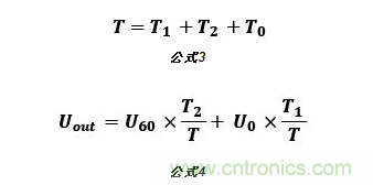 由8個(gè)基本電壓空間矢量可以合成任意定子電壓矢量。如圖4所示,以U0, U60扇區(qū)為例,若在一個(gè)PWM周期T內(nèi),同時(shí)輸出T1時(shí)間U0矢量和T2時(shí)間的U60矢量,則由矢量(T1/T)U0,(T2/T)U60可以合成給定的參考電壓矢量Uout。