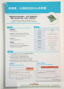 在傳感器方面,村田推出了剛剛在2017年9月份開始量產的高精度·長期穩(wěn)定的CO2傳感器。據(jù)了解,該產品根據(jù)村田獨有的標準曲線算法,實現(xiàn)了高精度檢測,并搭載了自動校正功能,確保了長期穩(wěn)定性,可以應用于智能農業(yè)和BEMS(Building Energy Management System)。在植物園、農業(yè)園里安裝了該產品后,可以精準檢測出園內CO2濃度,促進光合作用,有效利用CO2。該產品安裝在大樓空調系統(tǒng)用通風管后,能夠實時檢測大樓內CO2的濃度,只在必要時開啟新風系統(tǒng)進行換氣,從而對大樓整體節(jié)能做出貢獻,起到能源管理的作用。