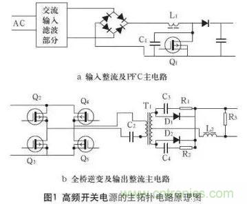 高頻開關(guān)電源的主拓撲電路原理,如圖1所示。