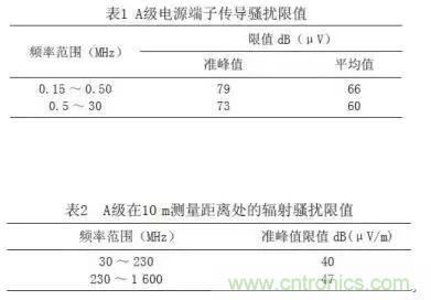 根據(jù)鐵路客運專線標準規(guī)定,傳導騷擾限值和輻射騷擾限值如表1、2所示。