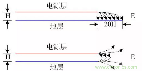 16、電源平面應相對于其相鄰地平面內縮20H,當因結構限制時,也應保證5H