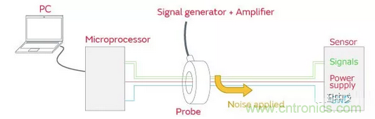 傳感器的信號線收到噪聲影響,傳感器的通信會發(fā)生停止。提高注入的噪聲水平,調(diào)查能夠正常工作(不發(fā)生誤操作)的水平極限。