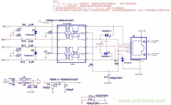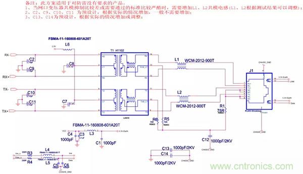 (1)以太網(wǎng)EMC(EMI)設(shè)計標準電路