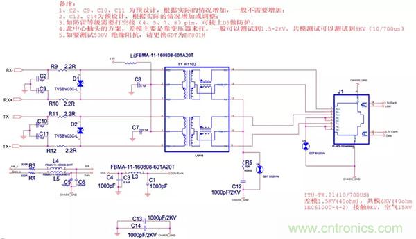 30、以太網(wǎng)EMC(浪涌)設(shè)計標準電路(差模要求較高方案)