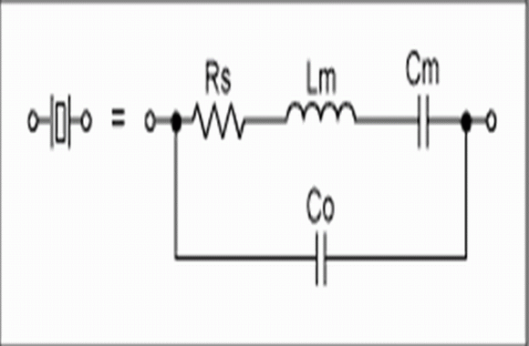 晶體的等效電路見圖1。圖中包括了動態(tài)元件:電阻Rs、電感Lm、電容Cm和并聯(lián)電容Co。這些動態(tài)元件決定了晶體的串聯(lián)諧振頻率和諧振器的Q值。并聯(lián)電容Co是晶體電極、管殼和引腿作用的結(jié)果。