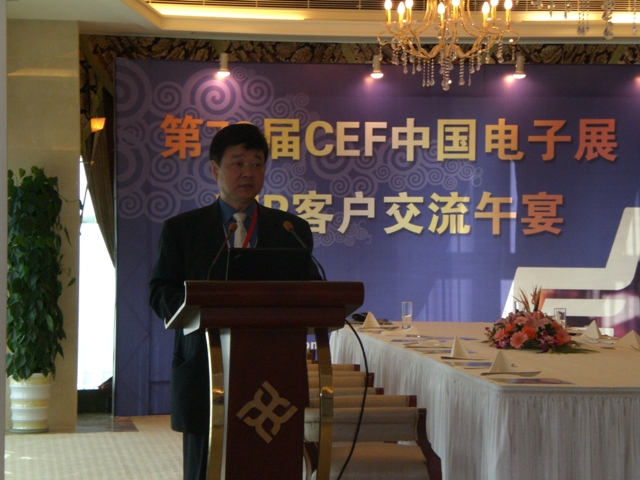 為答謝廣大電子廠商對中國電子展的長期支持,增進廠商了解和互信,中電會展于11月13日中午在永達大廈舉行交流午宴,邀請了包括美國福祿克、固緯電子、米尼帕電子、深圳帝光、武漢力源、威世、Analog Devices,中科泛華在內上百家企業(yè)的中高層領導,并邀請了高質量的買家客戶前來參加,其中包括富士康科技、日立顯示、LG中國采購中心等;深圳市中電網絡技術有限公司CEO 劉杰博士也受邀參加并發(fā)表演講,同來賓分享了對電子行業(yè)的未來趨勢發(fā)展的認識和看法。