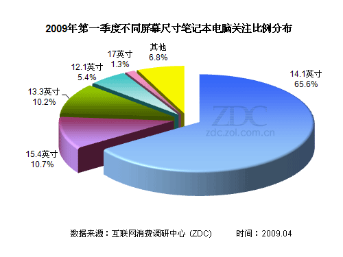 (圖) 2009年第一季度不同屏幕尺寸筆記本電腦關(guān)注比例分布