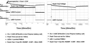 很明顯,不管設計師在何時使用超級電容,他們都必須限制尖峰電流。此外,當電壓掉到LED閃光燈的工作電壓以下時,超級電容就需要再充電。當超級電容充滿電時,它必須與充電源斷開。另外,它還需要短路保護、源過壓保護和過流保護。