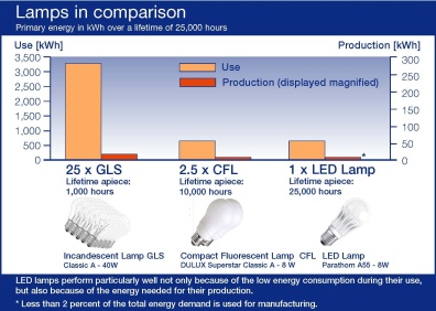 歐司朗針對(duì)LED 燈實(shí)施的生命周期評(píng)估 (LCA) 研究顯示,最新一代LED 燈在環(huán)保方面表現(xiàn)出色,獲得了極高的評(píng)分。此項(xiàng)研究深入細(xì)致地分析了LED 燈的整個(gè)生命周期,即在 LED 燈在生產(chǎn)、使用和廢棄方面所消耗的能源和原材料以及在這一過(guò)程中對(duì)環(huán)境造成的影響。研究結(jié)果表明,當(dāng)今的LED 燈已達(dá)到緊湊型熒光燈的LCA 分值,并且遠(yuǎn)遠(yuǎn)優(yōu)于傳統(tǒng)的白熾燈。