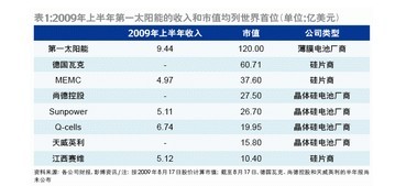 全球第一大薄膜電池廠商第一太陽能(First Solar)以耀眼的財務表現(xiàn)平息了外界對薄膜電池“泡沫”的這一爭議。在經(jīng)歷了2009年一季度的短暫環(huán)比下滑之后,第一太陽能二季度的營業(yè)收入達5.26億美元,同比增97%,環(huán)比增26%,同時,不僅市場份額有所提升,并且市值在全球光伏廠家中躍居首位(表1)。在晶體硅電池生產(chǎn)成本銳減的背景下,薄膜電池非但沒有失去市場份額,反而憑借不斷改進的技術(shù),頂住組件單價下滑的壓力,將單位生產(chǎn)成本進一步壓縮。
