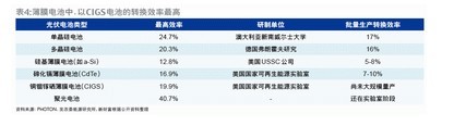 從成本來看,中投證券認為,盡管晶體硅價格暴跌,CIGS仍具成本優(yōu)勢。首先,由于CIGS電池尚未達到量產(chǎn),通過成本細拆,參照工藝類似的第一太陽能的成本構(gòu)成(主要是設備折舊、玻璃、材料和人工等四項),在規(guī)模化效應下,CIGS薄膜電池的成本約為1.07美元/瓦,已遠低于目前的晶體硅電池成本。其次,CIGS電池采用相對廉價的玻璃為襯底,這樣所需的稀有元素耗損量大為減少;另外,CIGS電池的弱光效應較好,對光照的要求降低,運行時間遠高于晶體硅電池。