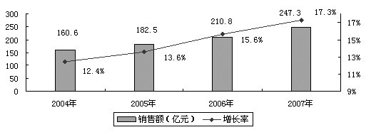 圖一:2004~2007我國醫(yī)療電子市場規(guī)模和增長率