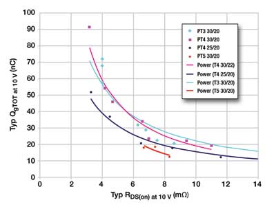 FOM=RDS(ON)×QgRDS(ON)直接與傳導損耗有關,而Qg直接與開關損耗有關。FOM越小,性能越好。圖3顯示了低電壓MOSFET工藝發(fā)展中FOM的進步。對于2004年實施的PowerTrench3而言,最好的FOM是240,而今天的PowerTrench5硅工藝中最好的FOM是126。