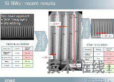 - IMEC的目標是實現(xiàn)在硅底板上形成硅納米線的太陽能電池,轉(zhuǎn)換效率將達到約33%