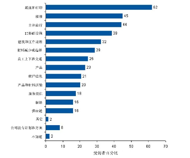 大多數(shù)企業(yè)都集中在相對容易、方便并熟悉的方面來提高能效、減少溫室氣體排放,如在節(jié)約用紙,減少差旅及IT基礎(chǔ)設(shè)施上。這些舉措有時(shí)能解決企業(yè)的實(shí)質(zhì)問題,有時(shí)卻不能解決實(shí)質(zhì)問題。但本質(zhì)上,這些舉措都與優(yōu)先次序沒有多大關(guān)系。IT企業(yè)需在能效和減少溫室氣體排放方面采取更為綜合的舉措。