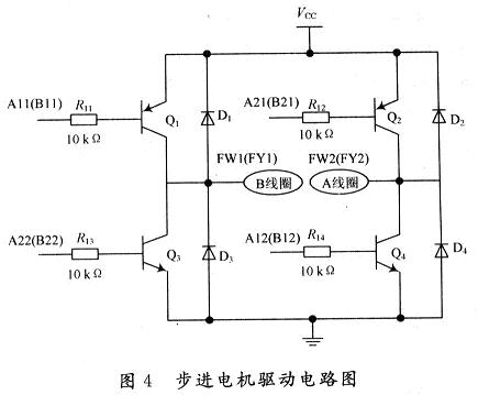 步進電動機是一種用電脈沖信號進行控制,并將電脈沖信號轉換成相應角位移的執(zhí)行器。在跟蹤系統(tǒng)中,以74HC240的16個輸出信號作為步進電機驅動器的輸入控制信號,用以控制步進電機俯仰方向和水平方位的正反轉。圖4所示的是步進電機一路驅動電路圖,系統(tǒng)共有四路驅動電路,分別驅動步進電機俯仰方向和水平方位的正反轉。