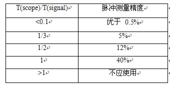 表一, T(scope)/T(signal)與脈沖信號測量精度的關(guān)系