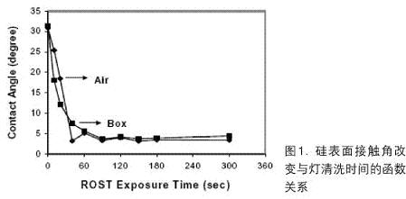半導體清洗技術的關注點隨時間而改變。早年關注的是大微粒和金屬污染物,實際上,當時半導體器件故障常常是由于襯底晶圓中的高缺陷密度引起,而不是表面污染引起的。隨著微粒和金屬污染的數量級逐漸減小,以及對這方面的污染控制非常有效,現(xiàn)在更多注意的是有機污染和表面狀態(tài)相關問題。如圖1指出的,用簡單的燈清洗法可以把有機污染從Si表面除去。此外,應特別注意溶解在水內和氣相的臭氧在控制有機污染中的作用。另一問題是對清洗方法目標監(jiān)察的多樣性,因為FEOL和BEOL清洗要求不同,后者關注的是CMP后清洗。