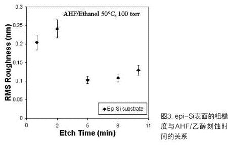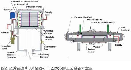 就干法清洗來說,它正用于有選擇的、大多是表面清理的步驟。例子之一是無水HF(AHF)/乙醇溶解工藝,它在多種應用中能有效地從Si表面除去本來有的或化學生成的氧化物。圖2是各種表面加工運作中執(zhí)行AHF/乙醇溶解工藝的25片晶圓和3片晶圓商品反應器的示意圖。圖3中的AFM結果說明,執(zhí)行工藝沒有損傷Si表面。