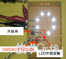 實際使用雙向晶閘管時的情景。即使1個LED發(fā)生開路故障,采用雙向晶閘管電力便可轉(zhuǎn)為旁路,因此串聯(lián)的其他LED仍會正常點亮