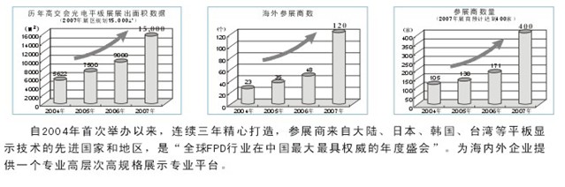 ●“光電平板顯示展”將吸引知名FPD企業(yè)的高管(日立、夏普、三星、LG、友達、華映等)、通路商的高管、政府要員、技術人員等近五萬人到場,同時組委會將通過國內外相關行業(yè)協會、商會組織專業(yè)士參觀。