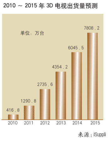 2010-2015年3D電視出貨量預(yù)測(cè)