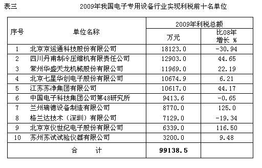 2009年我國電子專用設(shè)備行業(yè)完成的各項(xiàng)主要經(jīng)濟(jì)指標(biāo)見表一: