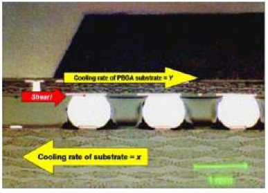圖7熱沖擊下BGA剪切應力的產(chǎn)生