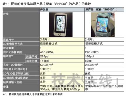 此次為了實(shí)現(xiàn)量產(chǎn),夏普進(jìn)行了以下改進(jìn):①提高了顯示性能;②實(shí)現(xiàn)了薄型化。①顯示性能方面,分別將影像顯示用液晶面板的精細(xì)度和亮度提高到了原來(lái)的兩倍(表1)。因此,即使進(jìn)行3D顯示,最大精細(xì)度也可達(dá)到165ppi。據(jù)介紹,這是通過(guò)驅(qū)動(dòng)元件(TFT)的微細(xì)化實(shí)現(xiàn)的。該公司稱(chēng),還通過(guò)提高兩張面板的粘合精度,減輕了左眼用和右眼用影像重疊的“串?dāng)_(Crosstalk)”現(xiàn)象。