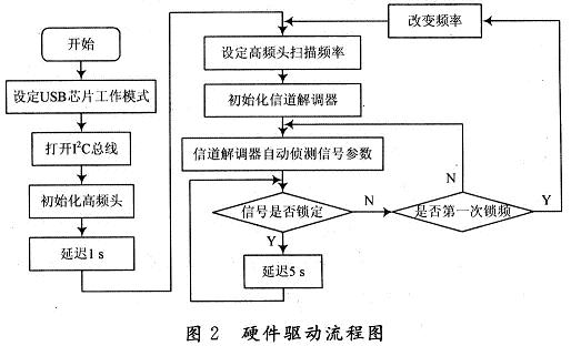 硬件驅(qū)動(dòng)程序是系統(tǒng)設(shè)計(jì)中很關(guān)鍵的一個(gè)部分,它直接關(guān)系到各硬件芯片是否能正常穩(wěn)定的工作。硬件的驅(qū)動(dòng)是由主控芯片來(lái)完成,在本方案中將uSB傳輸控制芯片CY7C68013作為主控芯片,它內(nèi)置增強(qiáng)型的8051內(nèi)核,通過(guò)I2C總線來(lái)控制前端的高頻頭和信道解調(diào)芯片,完成對(duì)前端的驅(qū)動(dòng)。