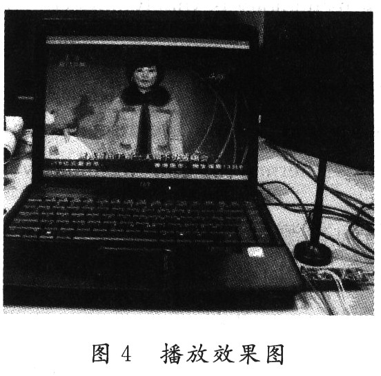 實(shí)驗(yàn)結(jié)果表明:無(wú)論在靜止和運(yùn)動(dòng)狀態(tài)下,整個(gè)系統(tǒng)長(zhǎng)時(shí)間工作穩(wěn)定,體積小,功耗低,接收效果好,誤碼率低,音視頻同步,節(jié)目播放清晰流暢,頻道切換小于1s,達(dá)到了設(shè)計(jì)要求。播放效果如圖4所示,播放頻道為廈門衛(wèi)視,圖中右下腳為USB數(shù)字電視接收棒及配套天線。