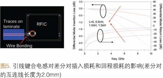 這一點也在圖5(L=0nH的情況下)中表示出來,回程損耗在頻率高達10.0GHz時保持良好,這表明100.0Ω差分對本身具有良好的匹配和低損耗特性。顯然,在高頻RFIC應(yīng)用中,引線鍵合損耗成為顯著的問題。為了克服這一阻抗失配問題,RFIC和封裝設(shè)計師應(yīng)協(xié)同工作,尋找與特定芯片阻抗相匹配的封裝形式。這樣可能出現(xiàn)非標準差分對設(shè)計,但是該設(shè)計將與引線鍵合芯片非常匹配。