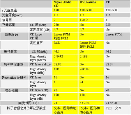 需要指出的是,DVD-Audio格式將與其它DVD格式相互共存。它們包括: