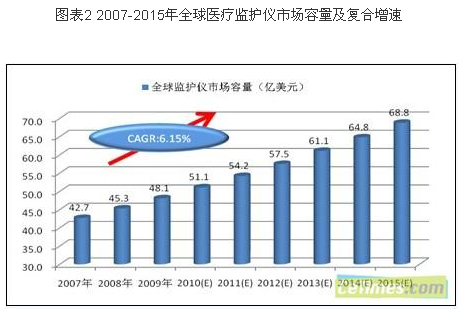 - 2015年全球監(jiān)護儀市場需求復(fù)合增速不會低于6.15%