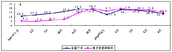 圖1 2009年7月至今規(guī)模以上電子信息制造業(yè)與全國(guó)工業(yè)增加值增速對(duì)比