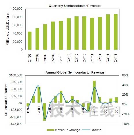 iSuppli從正面否定了對(duì)于此次快速增長(zhǎng)所擔(dān)心的“泡沫”和“二次探底”。關(guān)于泡沫問題,有觀點(diǎn)認(rèn)為,此前曾創(chuàng)下歷史最高增長(zhǎng)率的2000年出現(xiàn)了需求泡沫,所以此次的增長(zhǎng)會(huì)不會(huì)也是泡沫。但是,iSuppli指出,2000年的增長(zhǎng)是繼1999年經(jīng)濟(jì)繁榮之后的產(chǎn)物,而此次增長(zhǎng)的背景卻是經(jīng)濟(jì)形勢(shì)從2009年以前的經(jīng)濟(jì)低迷期開始的復(fù)蘇,因此這兩種情況“在循環(huán)本質(zhì)上完全不同”。關(guān)于二次探底,iSuppli高級(jí)副總裁戴利·福特(Dale Ford)表示,“我不同意二次探底將要到來的觀點(diǎn)”。他認(rèn)為,從2010年下半年開始,2010年半導(dǎo)體市場(chǎng)將恢復(fù)到通常模式。也就是說,2010年第二季度將環(huán)比增加8.2%,達(dá)到峰值,第三季度將環(huán)比增加6.7%、第四季度將環(huán)比增加0.4%,出現(xiàn)減速,進(jìn)入2011年后,由于通常的季節(jié)因素,將轉(zhuǎn)為環(huán)比負(fù)增長(zhǎng)。iSuppli預(yù)測(cè),回到這種標(biāo)準(zhǔn)增長(zhǎng)模式后,2011年的半導(dǎo)體市場(chǎng)將增長(zhǎng)7%。