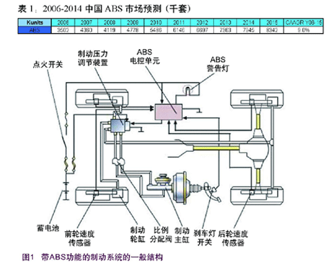 隨著經(jīng)濟的不斷發(fā)展,人們對汽車的需求正日益加強,與之相應,汽車的消費群體也變得越來越成熟,主要表現(xiàn)在消費者除了關注汽車的外型外還越來越重視汽車的內(nèi)在品質(zhì),其中,汽車的安全特性逐漸成為用戶考慮的首要選購條件。由此,作為主要的安全系統(tǒng)之一的汽車防抱死制動系統(tǒng)(ABS)正引起越來越多的關注。下表(表1)是世界著名咨詢公司StrategyAnalytics對中國ABS市場的預測,從中我們可以明顯地看出這種不斷增長的趨勢,預計在2006-2015年期間中國的ABS市場的年復合增長率將達到9.0%。