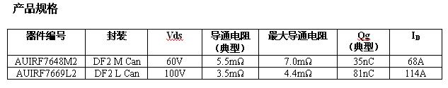 AUIRF7648M2 和 AUIRF7669L2 是 IR為 DC-DC 應(yīng)用量身定制的首款汽車級 DirectFET® 器件,提供低柵級電荷和導(dǎo)通電阻 (RDS (on) ) ,有助于將各種開關(guān)應(yīng)用的開關(guān)和傳導(dǎo)損耗降至最低。此外,由 DirectFET® 功率封裝提供的低寄生電感可以實(shí)現(xiàn)非常出色的高頻開關(guān)性能,并可減少波形振鈴,從而有助于限制電磁干擾和減小濾波器尺寸。