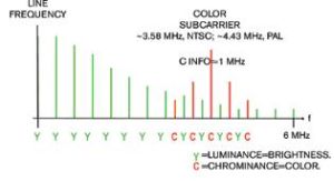 圖1:亮度信息和色度信息共享復(fù)合視頻信號的同一頻譜。