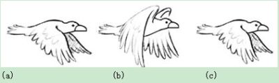 圖11:自適應(yīng)3D梳狀濾波器依賴解碼器來正確檢測圖像移動。這是鳥舞動翅膀的正常順序-向下(a),向上(b),再向下(c)。