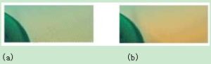 圖12:利用3D梳狀解碼器,無效檢測引起明顯的網(wǎng)格偽像(a)。圖像移動校正后,無網(wǎng)格偽像生成(b)。