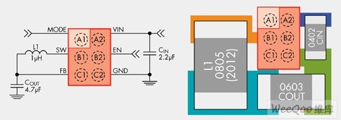 雖然工藝幾何尺寸的進(jìn)步滿足了對(duì)超緊湊型、低價(jià)SD存儲(chǔ)器的需求,但這種大容量器件也帶來(lái)了功耗問題。利用專門針對(duì)這類應(yīng)用而設(shè)計(jì)的降壓轉(zhuǎn)換器FAN5362等產(chǎn)品來(lái)替代目前的LDO,可以解決這一難題。圖6是完整的FAN5362功率解決方案的典型原理示意圖和PCB版圖。