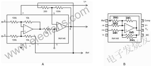 圖1在高壓側(cè)電流檢測中,共模電壓是主要問題老式分路檢測電路基于差動放大器,即周圍帶四個電阻來設(shè)置增益并提供差動輸入的運算放大器(operationamplifier)。這些電阻使運算放大器能接受超過其電源軌的共模電壓。不過,這也會帶來下面一些負(fù)面問題:一是電路必須配置為衰減器,在隨后的運算放大器級中恢復(fù)增益,如圖2A中的IC結(jié)構(gòu)圖所示,運算放大器的增益會成倍增大第一個放大器的偏置和漂移量,從而降低整體性能。二是采用高共模電壓差動放大器要增加電阻網(wǎng)絡(luò),以使之在仍然只提供單位增益的同時能夠接受較高的共模電壓。高共模差動放大器帶來的影響在于:運算放大器的噪聲增益與共模衰減成正比,如圖2B所示的差動放大器結(jié)構(gòu)采用了20:1的內(nèi)部共模衰減,此舉使放大器的偏置、漂移和噪聲都比運算放大器本身擴大了20倍。此外,較大的輸入電阻也會造成較高的噪聲。