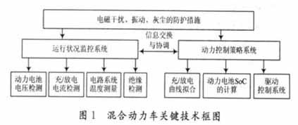 實現混合動力車共有三個關鍵因素:能夠對汽車運行狀態(tài)詳細監(jiān)控的系統(tǒng);分析監(jiān)控系統(tǒng)所獲取的信息,并發(fā)出相應的控制命令;相比一般電子系統(tǒng),混合動力車電子控制系統(tǒng)工作在車內非常惡劣的環(huán)境,電磁干擾、振動、灰塵等都會造成技術上的瓶頸,如圖1所示。