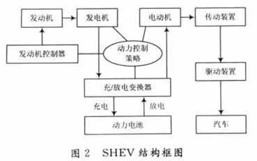 混合動力電動汽車由發(fā)動機和蓄電池共同提供動力,發(fā)動機和電動機可進行不同組合得到不同的驅動方案,如:串聯、并聯及混聯。整車性能的好壞不僅與發(fā)動機和電動機等部件有關,還與其控制策略和優(yōu)化方法有關。按照能源組合的方式,混合動力電動汽車可按動力驅動方式分為串聯式混合動力電動汽車(SHEV)和并聯式混合動力電動汽車(PHEV)。