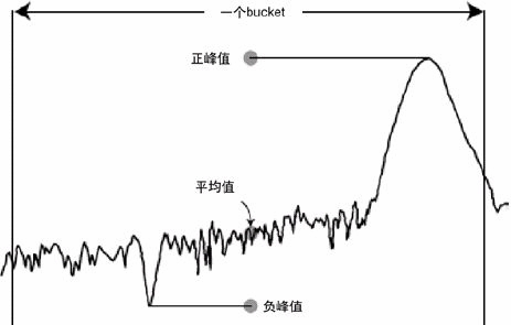 顯示的跡線點(diǎn)通常稱為“bucket”。頻譜分析儀進(jìn)行數(shù)據(jù)點(diǎn)采樣的時(shí)間稱為“bucket間隔”。圖2顯示了選擇不同檢波類型會(huì)對(duì)給定bucket的顯示跡線點(diǎn)產(chǎn)生什么影響。