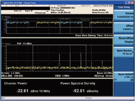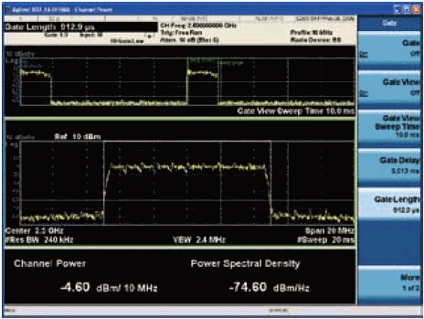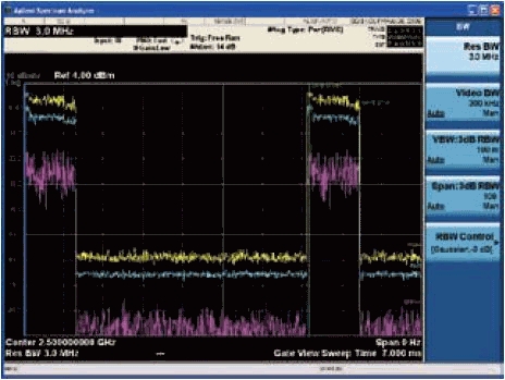 圖4圖中的信道功率測(cè)量使用WiMAX下行鏈路猝發(fā)脈沖進(jìn)行選通。
