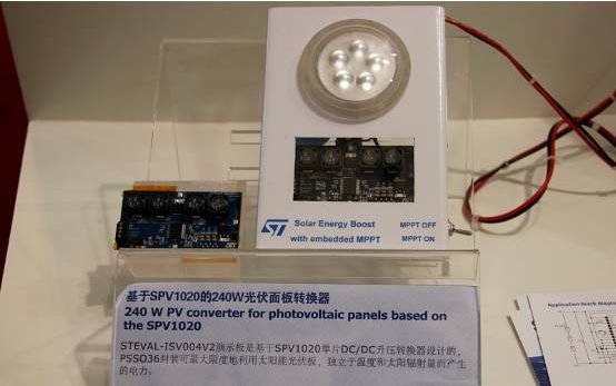 在本次展會(huì)上,ST公司展示了基于四相交錯(cuò)DC/DC轉(zhuǎn)換器SPV1020的240W光伏面板轉(zhuǎn)換器方案,號(hào)稱可以將太陽(yáng)能板的轉(zhuǎn)換效率提高2個(gè)百分點(diǎn)。[page]
