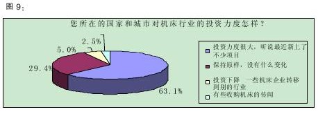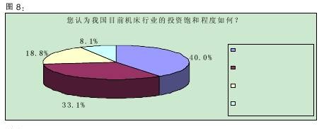 調(diào)查數(shù)據(jù)顯示,40.0%的受訪者認(rèn)為我國(guó)目前機(jī)床行業(yè)的投資“大體上飽和,但還有投資空間”,33.1%認(rèn)為“不飽和,還需要加大投資力度”。(詳見(jiàn)圖8)該結(jié)果表明,三分之一的被訪者認(rèn)為機(jī)床行業(yè)還有投資的空間,加上那些認(rèn)為投資空間很大的比例,有超過(guò)一半的人認(rèn)為機(jī)床行業(yè)還應(yīng)該增加投資,業(yè)界對(duì)機(jī)床行業(yè)的預(yù)期由此可見(jiàn)一斑。