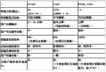 將目前常見的幾種有線數(shù)字電視網(wǎng)絡(luò)服務(wù)類型進(jìn)行比較,一種是最基礎(chǔ)的廣播型電視服務(wù),一種是NVOD,還有是真正的VOD業(yè)務(wù)。這幾種業(yè)務(wù)有什么不同:廣播型的業(yè)務(wù)還是像以前的電視一樣,雖然是臺(tái)多了,但是普遍的受眾沒有選擇的余地,沒有選擇的內(nèi)容,放什么看什么。NVOD相對(duì)來說有了一定程度的可選擇性,我們可以選擇在不同的時(shí)段來看內(nèi)容,可選擇的內(nèi)容是固定的,還是由運(yùn)營商來確定的?;?dòng)電視VOD業(yè)務(wù)有非常好的互動(dòng)能力,強(qiáng)調(diào)了互動(dòng)的能力,可選的業(yè)務(wù)非常多。很顯然互動(dòng)電視業(yè)務(wù)是非常受歡迎的業(yè)務(wù)。但是沒有大批量地推廣開來,只是在大城市做的好些,很多地區(qū)在平移,涉及到了互動(dòng)電視的問題,前端需要投入大量的人力、財(cái)力、物力。NVOD加少量的服務(wù)器和少量的資源就可以完成,但是要實(shí)現(xiàn)互動(dòng)必須要進(jìn)行雙向的改造。從實(shí)現(xiàn)服務(wù)所需要增加的投入來看,廣播電視已經(jīng)做到,NVOD非常少,互動(dòng)電視業(yè)務(wù)非常多??梢钥吹交?dòng)電視業(yè)務(wù)與PUSH-VOD系統(tǒng)是矛盾,雖然資源消耗極大,但是有非常好的優(yōu)勢(shì)和有很良好的互動(dòng)性。